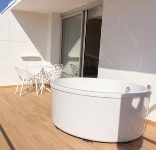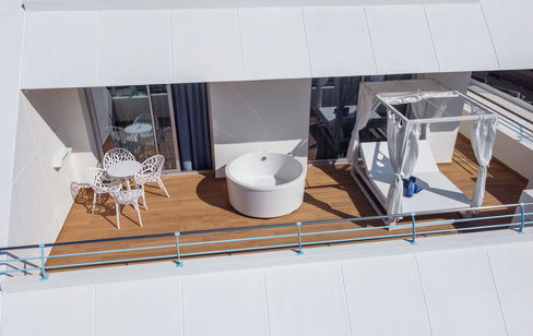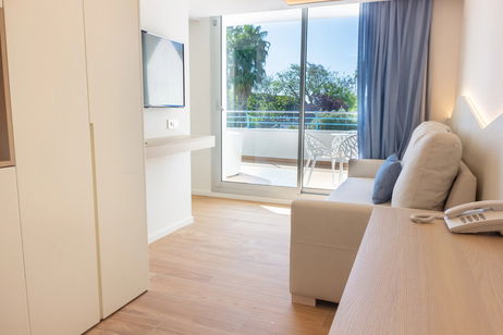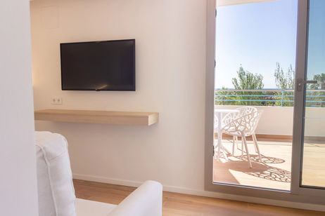 Habitaciones privilegiadas con vistas al paseo Marítimo y a la piscina. Disponen de sala de estar separada del dormitorio, una inmensa terraza y todos los detalles para que su estancia sea inmejorable.