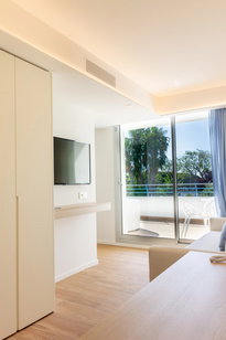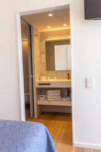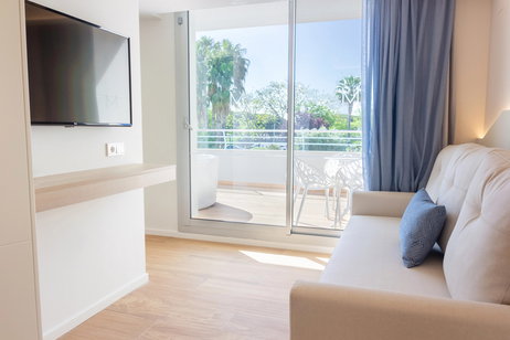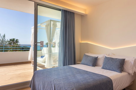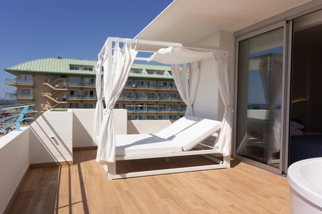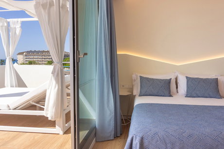Habitaciones privilegiadas con vistas al paseo Marítimo y a la piscina. Disponen de sala de estar separada del dormitorio, una inmensa terraza y todos los detalles para que su estancia sea inmejorable.
